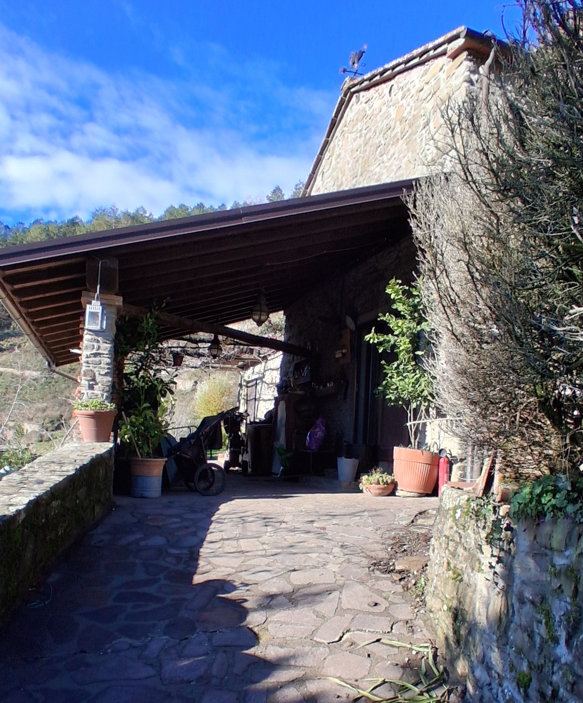 (Rif. CA30) Pressi Carmignanello: in zona semi collinare a 450 s.l.m., con 10 ettari intorno alla casa, vendesi colonica in pietra libera su 4 lati di 150 mq. ristrutturata pochi anni fa composta al piano terra da portico frontale, Ingresso su ampio salotto con camino aperto su cucina abitabile con porta finestra per accesso al giardino per pranzi e cene all’aperto. Sempre al piano terra, zona living con stufa refrattaria e bagno finestrato con sanitari e doccia oltre ripostiglio esterno. Al primo piano: ulteriore soggiorno con camino con soppalco a vista (possibilità 3° camera), disimpegno, camera matrimoniale, camera media. oltre annesso con tettoia e forno a legna e distante pochi metri. La ristrutturazione ha compreso: i muri con pannelli Sandwich e bidoncino. I Solai sono stati rinforzati con rete elettrosaldata, sono state mantenute le travi a vista originali. è stato realizzato lo scannafosso sui 4 lati della casa. il riscaldamento avviene tramite la cucina economica a legna e stufa refrattaria con doppia camera sempre a legna. Acqua di sorgente autorizzata con impianto a raggi UVB integrata da deposito per 40.000 litri. Nel terreno di proprietà sono presenti: Alberi da frutto come meli, fichi, Susini, nespoli. Frutti Rossi, Ribes e Ulivi per una produzione media annua sui 50 KG di olio. La colonica ed i suoi terreni erano parte integrante della “fattoria di Gricigliana” e dalla produzione di questi terreni nel 1939 la fattoria stessa vinse il premio miglior olio d’italia. Ma già nell’antichità era famosa per la produzione di vin santo servito anche alla corte dei Medici.